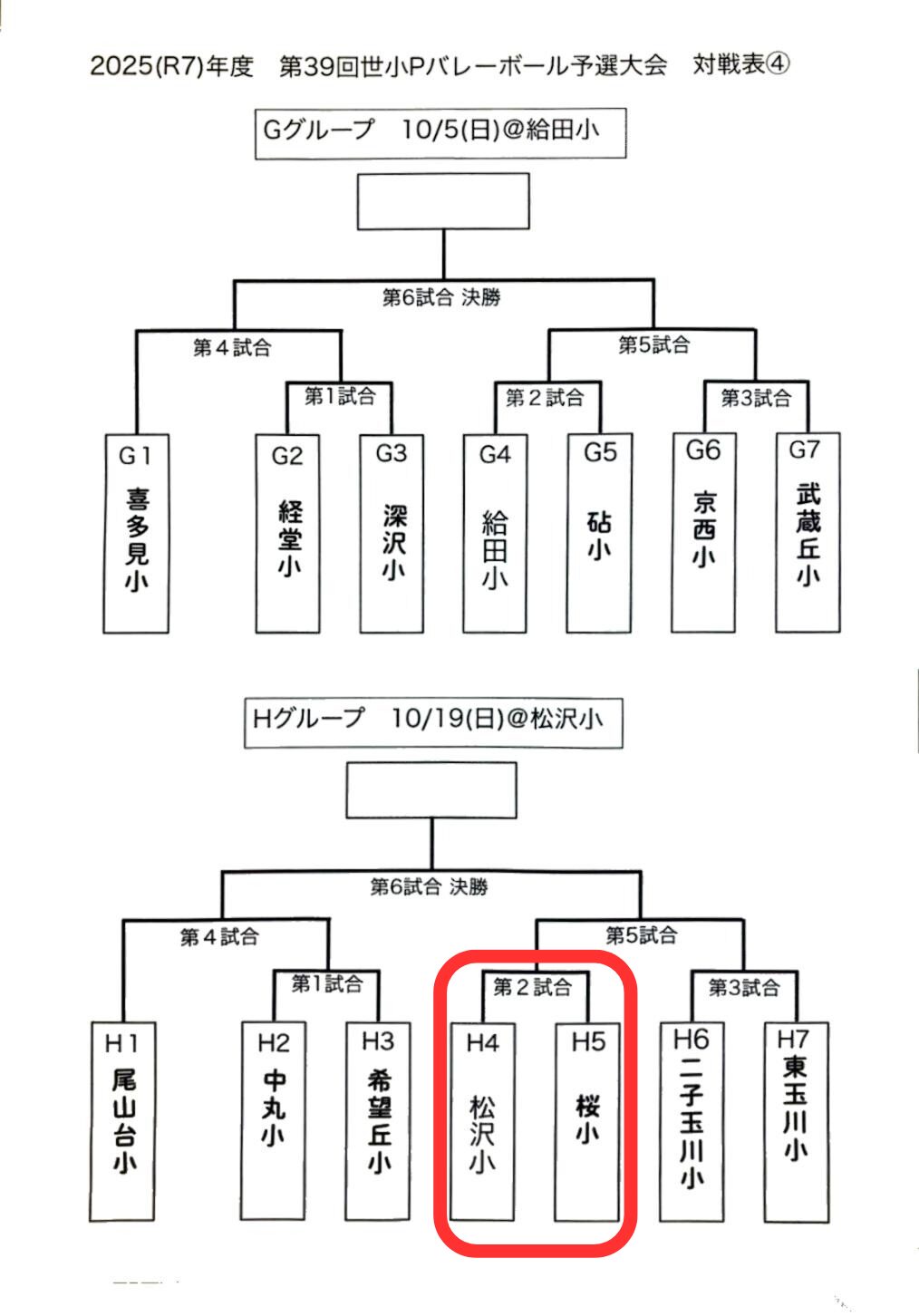 松沢小は 第2試合(10時半頃)に桜小さんと対戦します。
